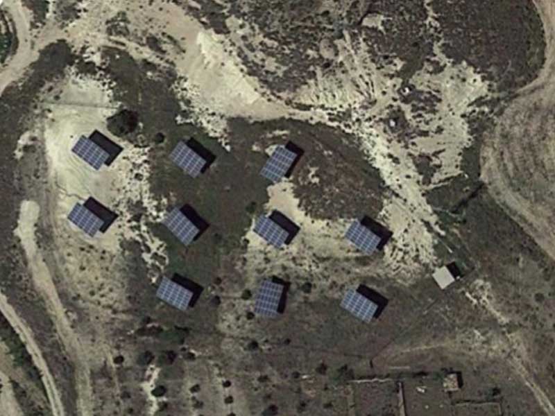 Instalación fotovoltaica de 50 kW para inyección a red de la energía generada. Seguidor a dos ejes. Módulos monocristalinos e inversores Solarmax. Ejecutada en 2008. Proyectada, construida y explotada por Desarrollos Guaso. Provincia de Huesca.