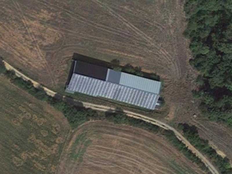 Instalación fotovoltaica de 100 kW para inyección a red de la energía generada. Estructura fija sobre suelo. Módulos monocristalinos e inversores Solarmax. Ejecutada en 2007. Proyectada, construida y explotada por Desarrollos Guaso. Provincia de Huesca.