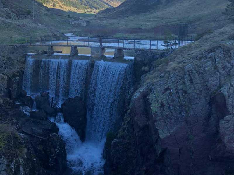 Central hidroeléctrica de 250 kW para inyección a red de la energía generada. Turbina tipo Pelton. Salto de 100m. Proyectada, construida y explotada por Desarrollos Guaso.